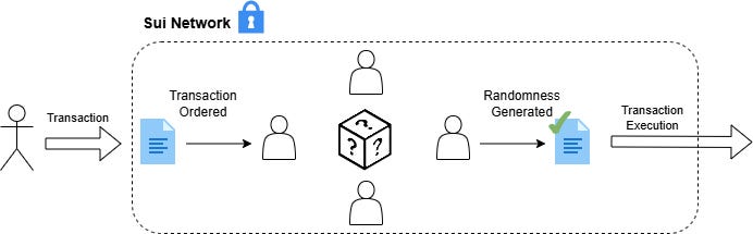 On Sui, validators do the same thing, using cryptography to generate randomness via Distributed Key Generation (DKG), initiated at the start of each epoch. During this process, each validator receives a share of a jointly generated secret key. When a transaction is ordered, validators use their shares to collectively produce a random value that is included just before execution. This ensures that randomness is fast, verifiable, and unmanipulable—securely embedded within the protocol without relying on any external system. Source , Source