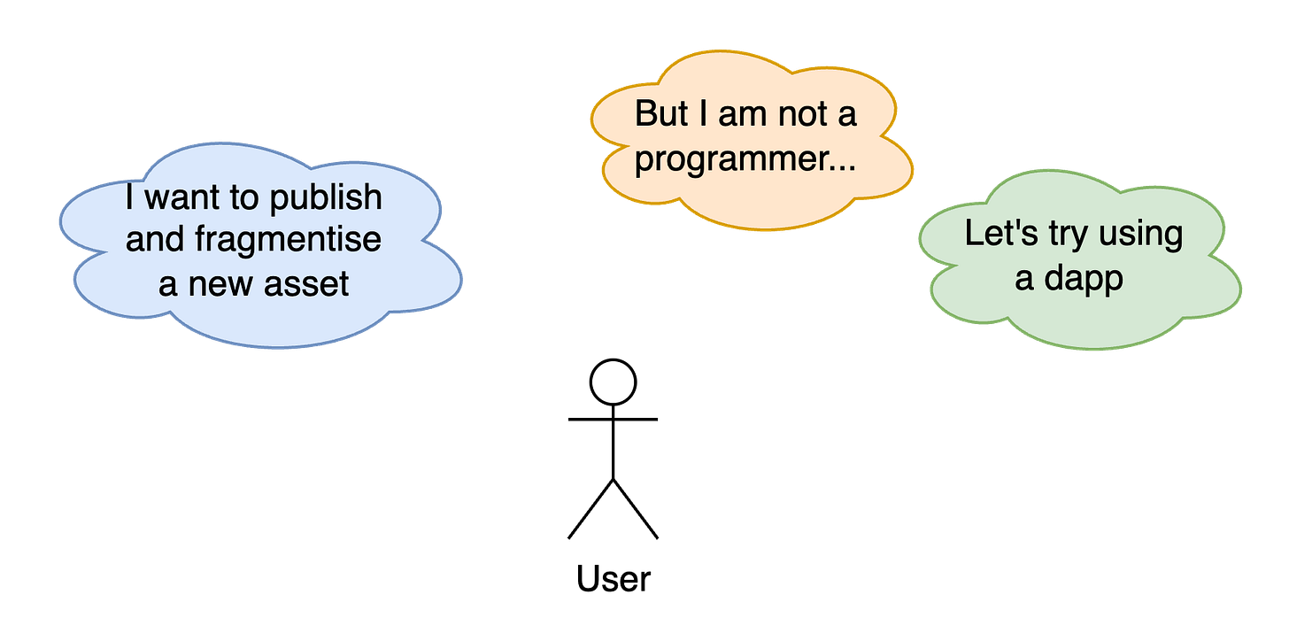 Therefore, building a web application that allows users to create new assets and tokenise them on Sui is essentially about providing a graphical interface for inserting the information and executing the steps visualised in the following diagram.