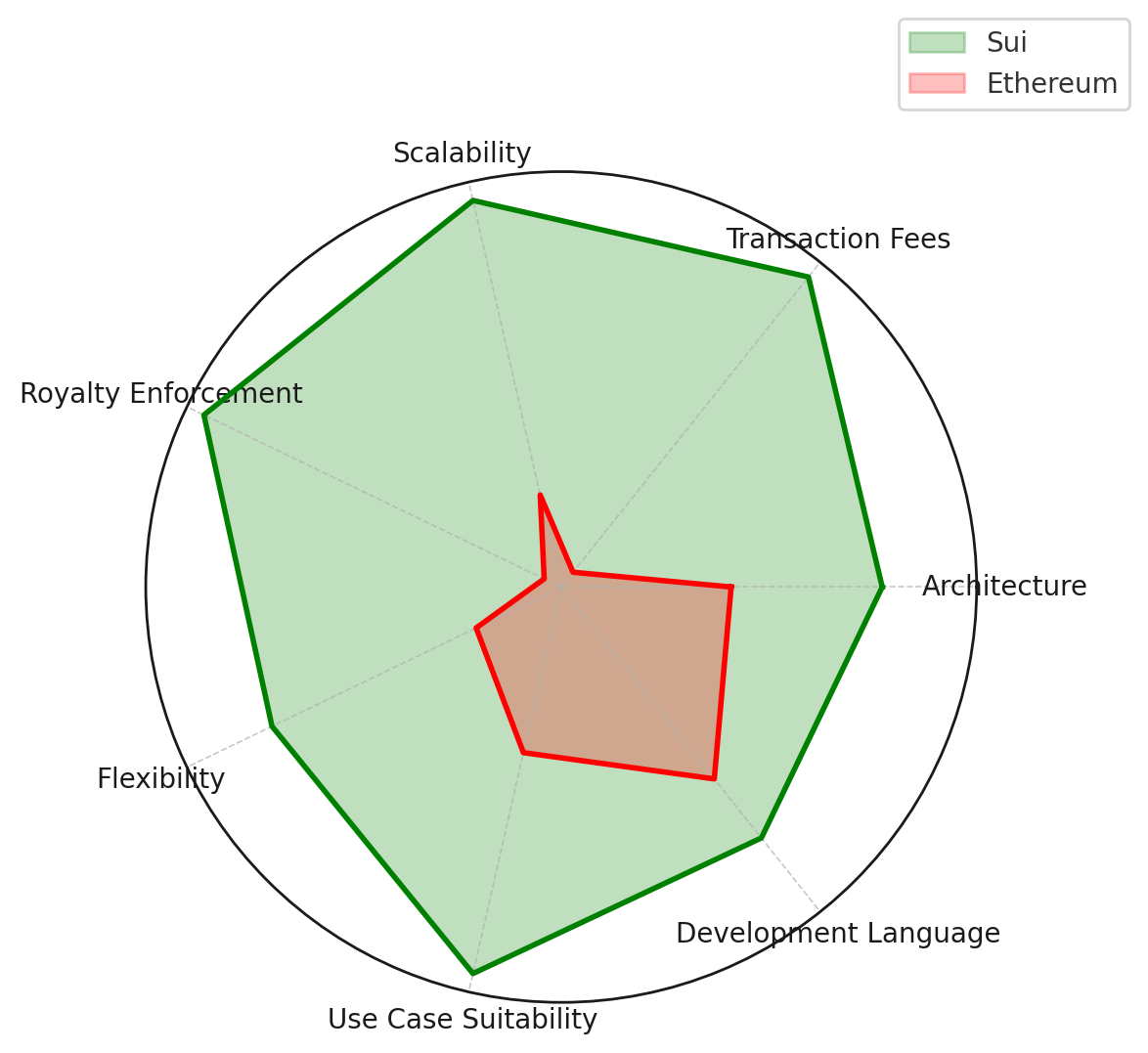 Sui stands out for its innovative object-centric architecture, which streamlines the management of tokenised assets without impacting the entire blockchain state. Its Kiosk framework enforces trading rules and royalties directly on-chain, eliminating reliance on intermediaries, unlike Ethereum’s marketplace-dependent model.