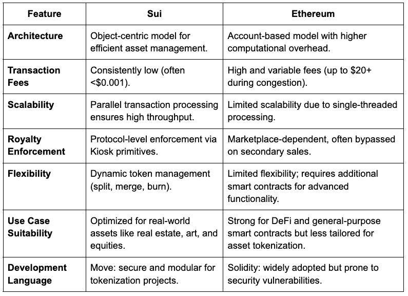 By combining cost efficiency, scalability, flexibility, and security, Sui sets a new standard for asset tokenisation, making it a superior choice for tokenising both fungible and non-fungible assets.