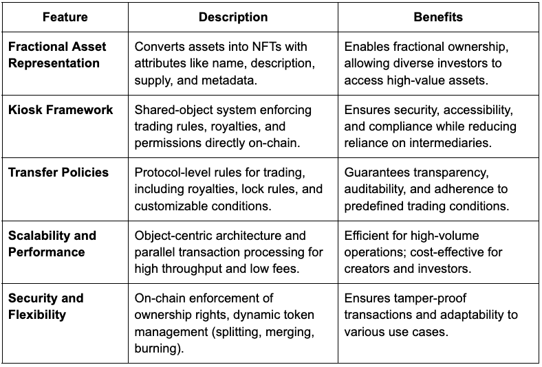 Sui’s advanced infrastructure establishes it as a leader in blockchain-based asset tokenisation, seamlessly blending transparency, automation, and flexibility. Its object-centric architecture and Kiosk framework enable efficient fractional ownership, enforce royalties, and manage trading permissions directly at the protocol level. With parallel transaction processing, Sui delivers high scalability and low fees, making tokenisation accessible to creators, investors, and platforms. By combining scalability, security, and usability, Sui empowers the tokenised economy and drives the future of decentralised ownership across industries.
